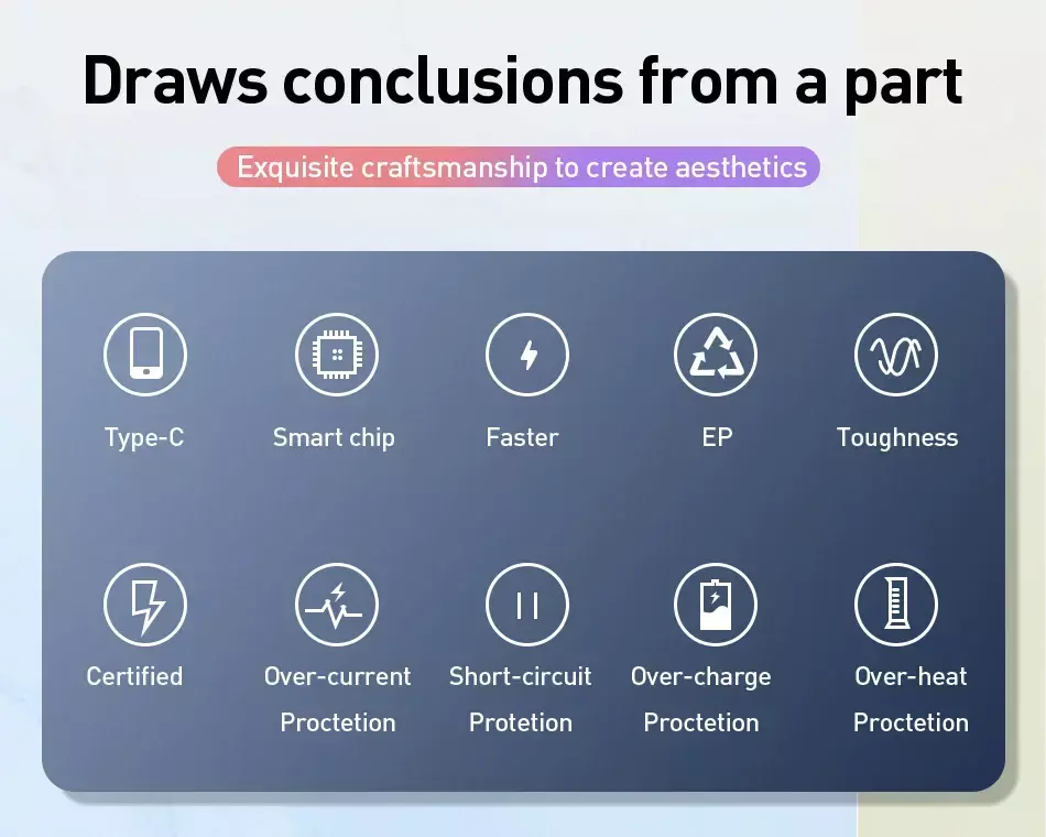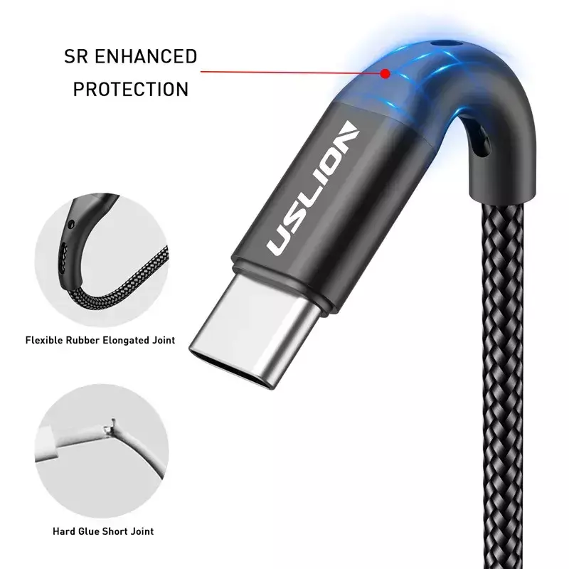 O cabo de nylon é de alta intensidade e durável, cobertura completa de SR, proteção de borracha macia alongada, junta curta de plástico rígido, nunca se preocupe com dobras e quebras.