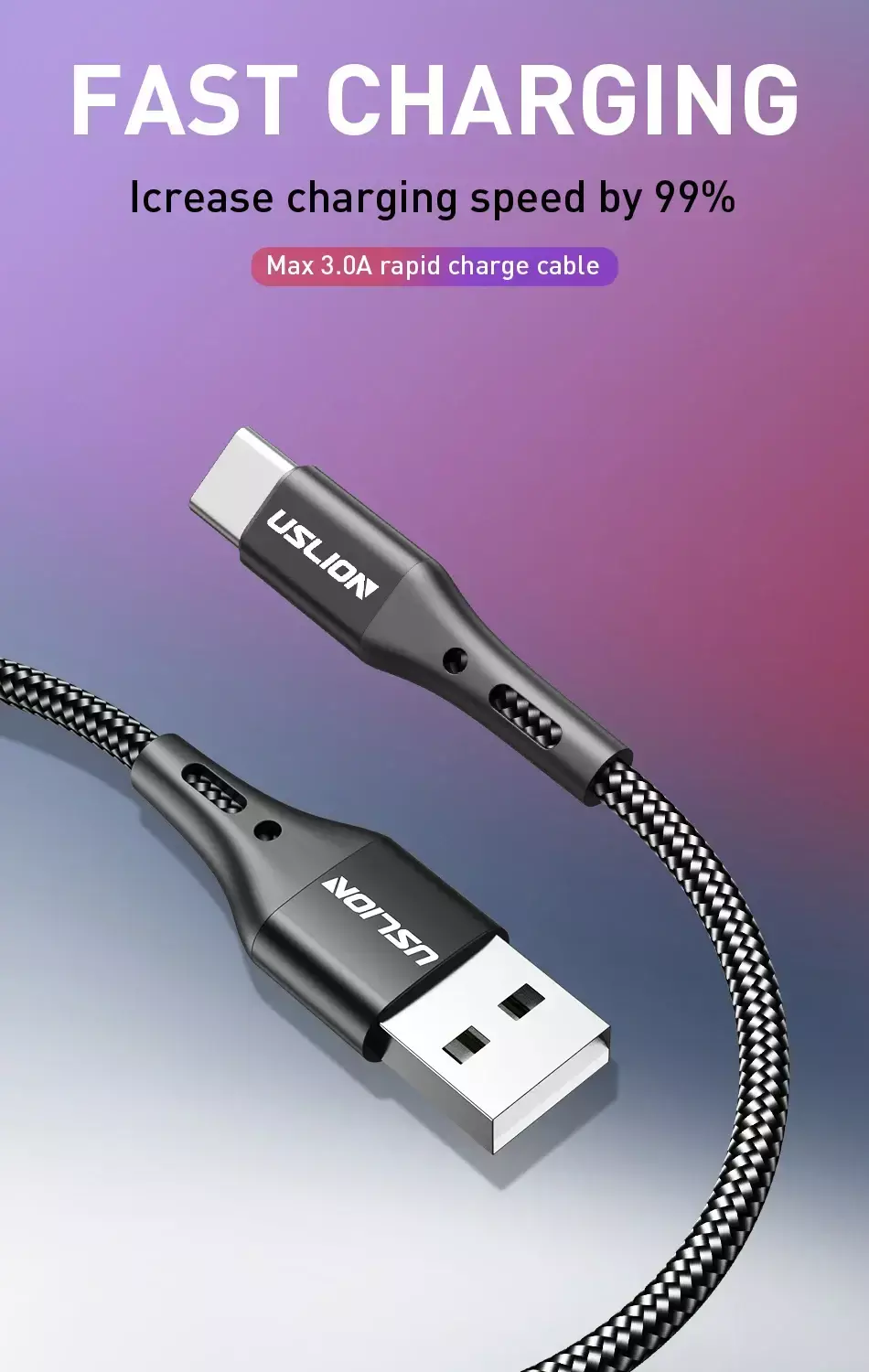 ?Cabo micro USB tipo C de carregamento rápido 3A?