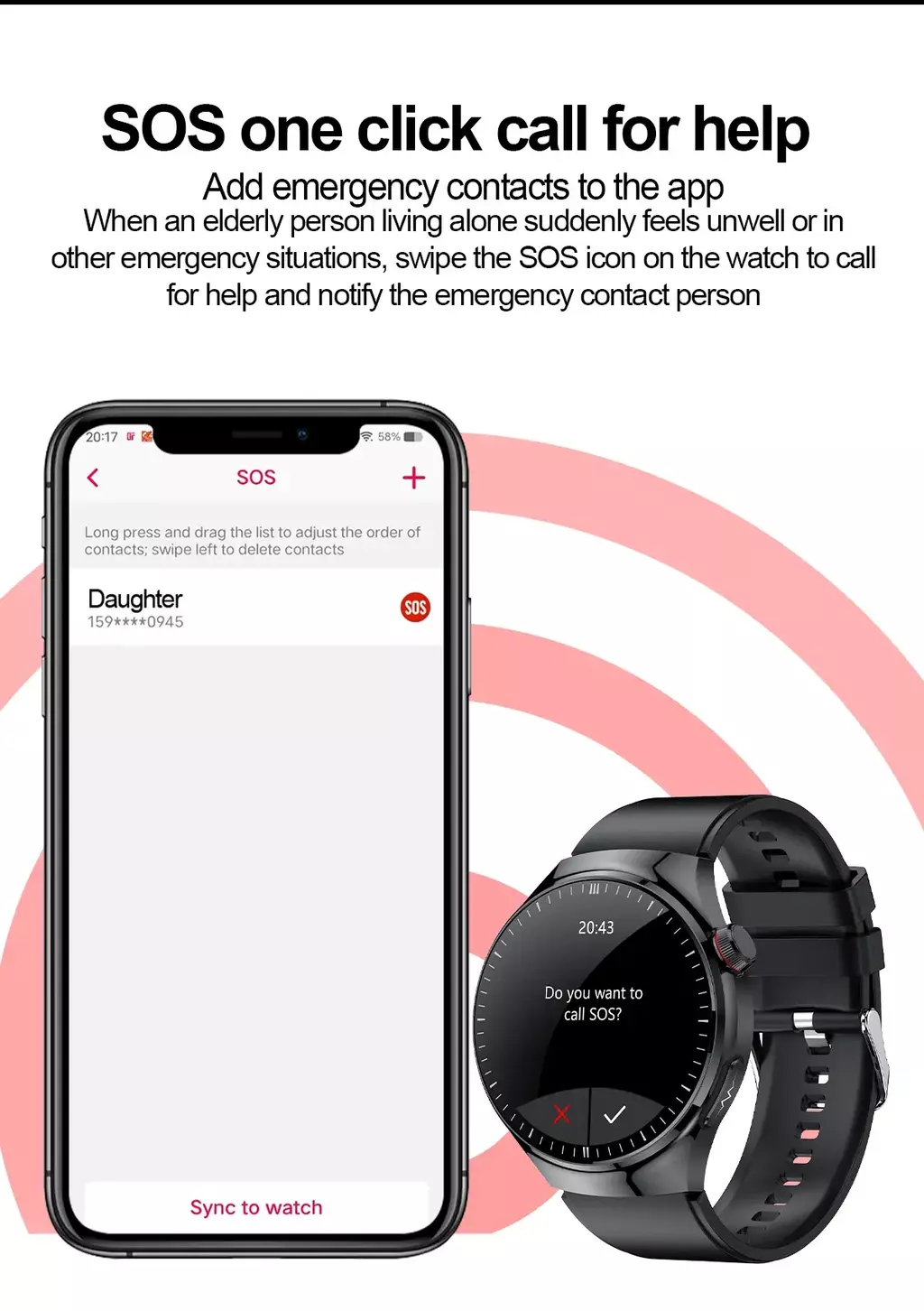 Remote relatives and friends care: 368*448 AMOLED HD Sapphire Glass