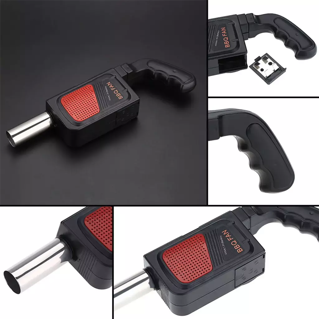 Este ventilador elétrico para churrasco é portátil, leve e seguro de usar.Alimentado por baterias, é de alta eficiência.Comece a disparar facilmente para o seu churrasco, sem necessidade de soprá-lo com a boca.